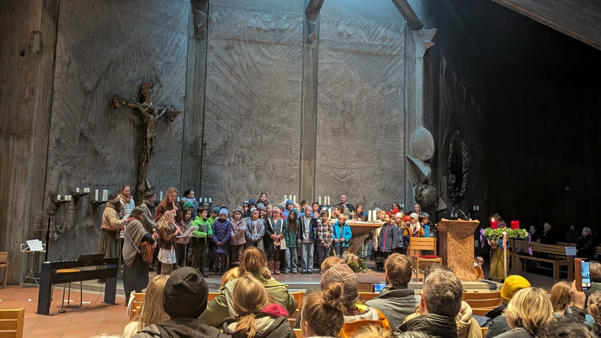 Am ersten Adventssonntag war die Kirche Christi Himmelfahrt mehr als überfüllt, als die Kinder der Montessori-Schule Passau mit der gesamten Schulfamilie den Beginn der sogenannten „staaden Zeit“ feierte. Gemeinsam eröffneten die hundert Grundstufenkinder mit dem Lied: „Wir sagen euch an den lieben Advent“ und versetzten die lauschende Feiergemeinde prompt in vorweihnachtliche Stimmung.