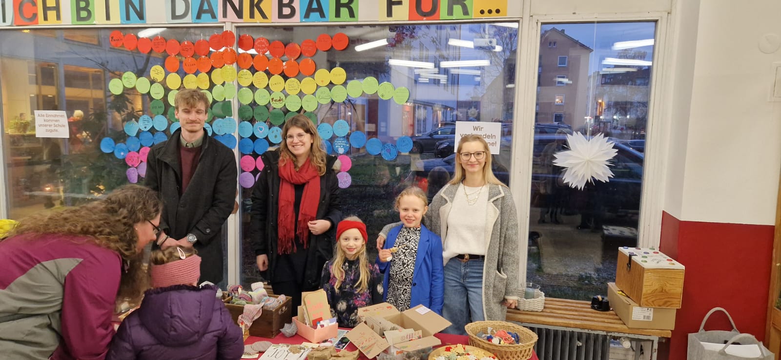 Drüben im Schulhaus auf der anderen Straßenseite wurden danach ebenso liebevoll und selbst hergestellte Waren von Schülern und Eltern, wie auch Flohmarktware und Bücher, angeboten. Diese erfreuten sich eines reißenden Absatzes bei dem großen Publikum. Darunter befand sich auch ein Tisch der Oberstufenschüler, die für ihr „Projekt Zukunft“ Waren zum Verkauf anboten, um das eingenommene Geld für ihre selbstgewählten Projekte zum Thema Nachhaltigkeit verwenden zu können. Und genauso begehrt wie das opulente Buffet vom „Arbeitskreis Feste“ waren der Kinderpunsch und die alkoholfreien Cocktails, die die Gruppe der Miniköche eigens kreiert hatten und an ihrer Bar ausschenkten.