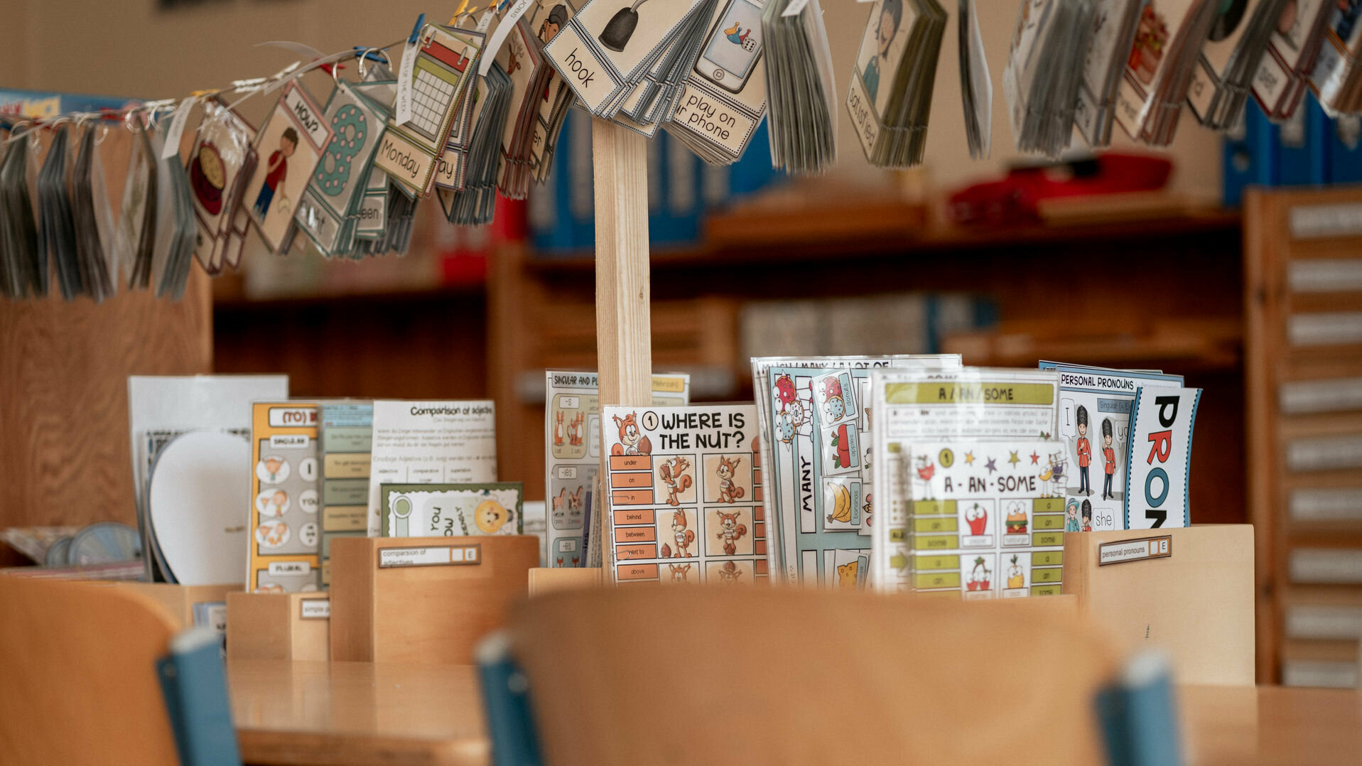 Innerhalb der Freiarbeit finden Einführungen für Kleingruppen, aber auch gebundener Unterricht im Kreis mit der gesamten Klasse statt und es werden erarbeitete Referate und Buchvorstellungen gezeigt.